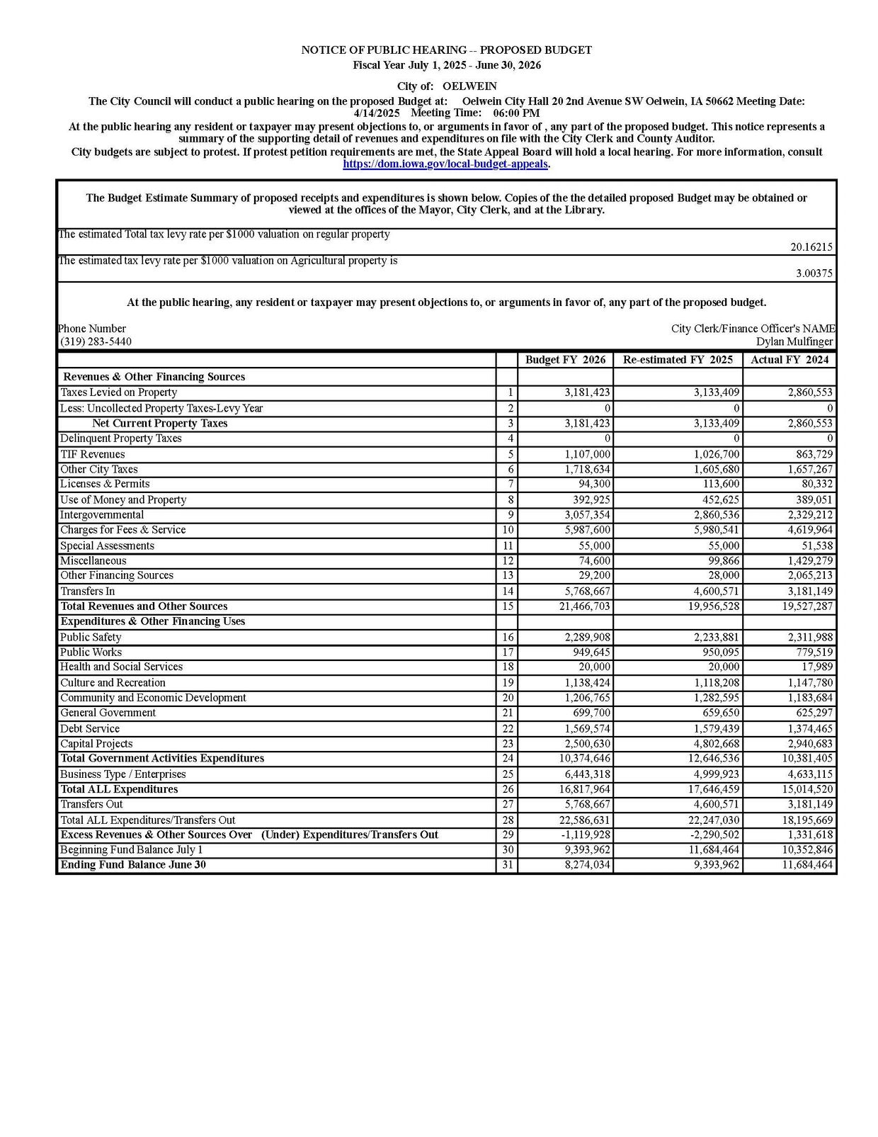 City of Oelwein 20 Second Avenue SW Oelwein, IA 50662