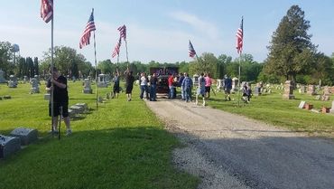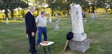 A story often repeated tells that a young man passing through the area commented that the location where Oakdale is today, would make a ideal cemetery. The story goes on that on his return trip through this area he died and became the first person buried at this site. A stone with the name Israel Barleen who died April 6, 1853 at the age of 24 is believed to be this same young man. This stone stands proud today among other worn stones. The 1878 Fayette County History tells of a second burial, that of Isaac Edwards who settled in Jefferson Township in 1852, became ill during the summer of 1853 and died and was buried September 1853.